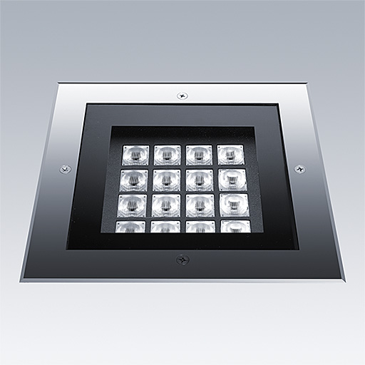 Axyl Opera montage encastré dans le sol, luminaire à LED pour l'éclairage décoratif des façades, avec et distribution asymétrique. Classe électrique I.. gradable DALI-2 Driver. IP67, Résistance aux impacts : IK09. Boîtier : aluminium Moulage sous pression, sans peinture texturé acier inoxydable. Température de service de Température ambiante : -20°C à +45°C. Livré avec LED 2 700 K..