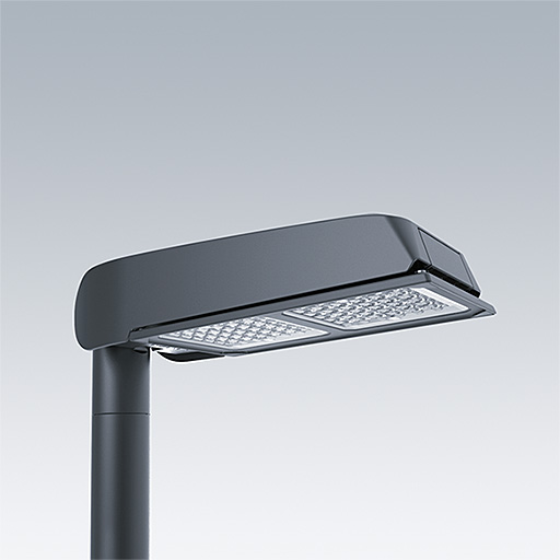 Lanterne d’éclairage routier LED de taille Large avec 72 LED et une optique Route étroite 700mA. Electronique,Classe électrique I, IP66, IK08. Corps : aluminium (EN AC-44300) Moulage sous pression, gris anthracite 900 sablé thermopoudré. Fermeture : verre plat trempé. Cadre blanc avec un bord gravé. Vis : Acier inox, traitement Ecolubric®. Livré avec un adaptateur d’emmanchement Ø 76 mm qui convient pour montage top (inclinaison 0°/5°/10°) ou latéral (inclinaison -20°/-15°/-10°/-5°/0°). Equipé d'un 50% circuit de réduction de puissance, qui entre en vigueur 3 heures avant et 5 heures après un minuit calculé. Il peut être désactivé à l'installation avec un interrupteur interne facilement accessible. Livré avec LED 4 000 K. Protection contre la surtension : mode commun à une impulsion 10 kV et mode commun multi-impulsions 8 kV et mode différentiel multi-impulsions 6 kV. Si un système DALI permanent est connecté, mode différentiel et mode commun multi-impulsions 6 kV.