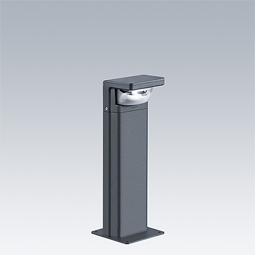 Borne LED sur semelle de 700 mm de haut, incorporant la technologie Flat beam® de Thorn. 1 LED alimentée en 200 mA. intégré Driver inclus. Classe électrique I, IP66, IK10. Corps : Moulage sous pression aluminium (EN44300, compatible avec l'installation en bord de mer), thermopoudré, texturé gris anthracite 900 sablé. Vasque : traitement anti-UV Polycarbonate (PC), semi-dépoli. Fixations : Acier inox. Livré avec LED 3 000 K.