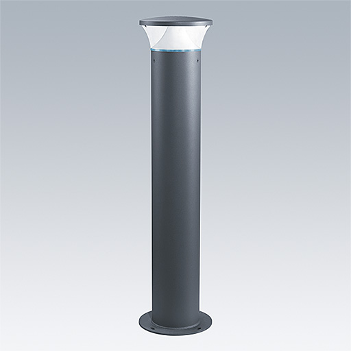 Borne de faible épaisseur, élégante et anti-vandalisme Radialement symétrique avec optique de haute performance. Pour Electronique, non gradable. Classe électrique IP66 l. Mât et socle : aluminium (EW AW 6060). Chapeau : aluminium Moulage sous pression (EN AC 44300). Diffuseur : Polycarbonate (PC) transparent anti-UV. Boîtier appareillage : Polycarbonate (PC). Couleur du chapeau et mât : gris anthracite 900 sablé thermopoudré (similaire à RAL7043). Bande d’éclairage décoratif RGB en bas de la tête, facile à configurer au moment de l’installation.Luminaire Détecteur de présence intégré pour l’allumage et l’extinction. pré-câblé et prêt à installer. Boîtier de connexion nécessaire, à commander séparément. Livré avec LED 4 000 K