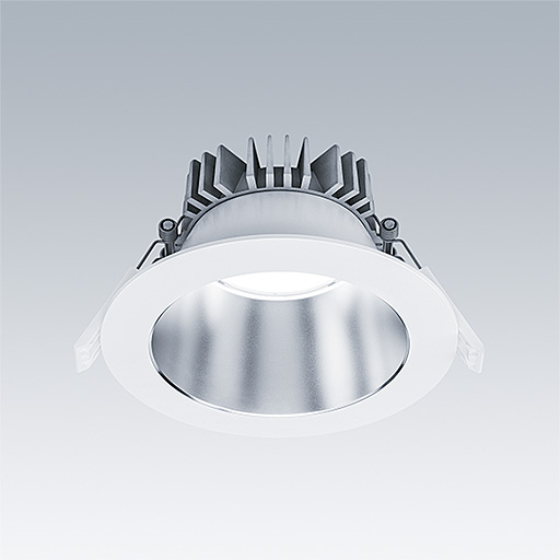 Downlight LED encastré de faible hauteur. Convient pour les découpes de plafond Ø145-180 mm dans des rénovations ou des installations neuves, simples et rapides. Driver LED Graduable par paliers détachable avec fonctionnalité CC, réglable 50 – 100 %, configurable NFC circuit d’éclairage de secours, test manuel, 3 heures. Câblage avec repiquage possible. Corps : Moulage sous pression pour gestion thermique. Diffuseur : Polycarbonate (PC), réflecteur lisse en finition Finition satinée avec faisceau large. Réflecteur : Polycarbonate (PC) de haute qualité et hautement réfléchissant. Classe électrique II, IP43_IP20. Clips à ressort pour des épaisseurs de plafond jusqu'à 35 mm.