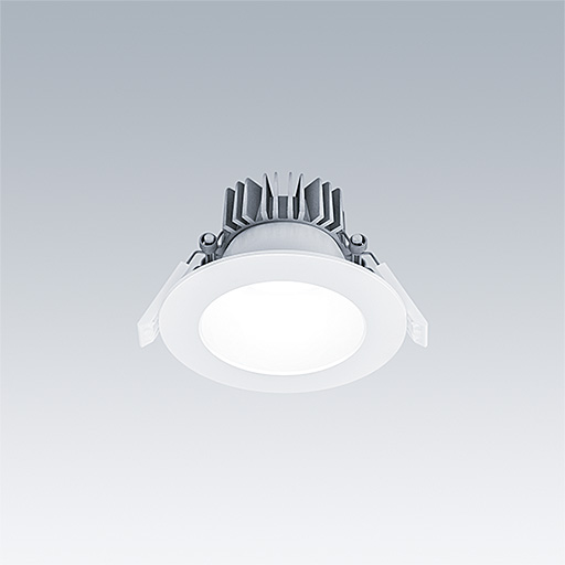 Downlight LED encastré de faible hauteur. Convient pour les découpes de plafond Ø95-125 mm dans des rénovations ou des installations neuves, simples et rapides. Driver LED Flux fixe détachable avec fonctionnalité CC, réglable 50 – 100 %, configurable NFC. Câblage avec repiquage possible. Corps : aluminium Moulage sous pression pour gestion thermique. Diffuseur : Polycarbonate (PC), réflecteur lisse en finition blanc avec faisceau large. Réflecteur : Polycarbonate (PC) de haute qualité et hautement réfléchissant. Classe électrique II, IP44_IP20. Clips à ressort pour des épaisseurs de plafond jusqu'à 25 mm. Livré avec LED 4 000 K