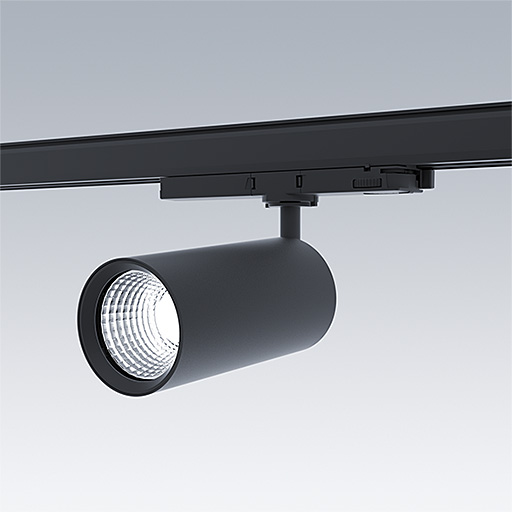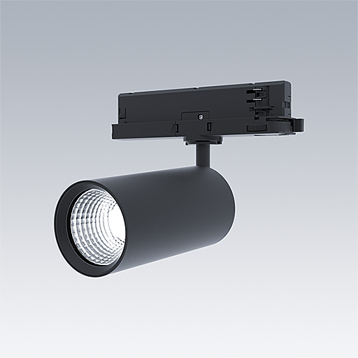 Projecteur LED pour installation sur rail triphasé avec distribution lumineuse de type projection large et température de couleur stabilisée. Electronique, non gradable. Classe électrique II, IP20. Corps : aluminium Moulage sous pression, peinture microtexturée noir. Réflecteur : PC poudré. Projecteur orientable sur le plan horizontal de 360° et inclinable sur le plan vertical de 90°. Livré avec LED 3 000 K