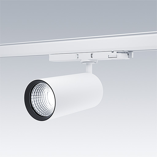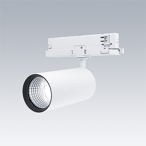 Projecteur LED pour installation sur rail triphasé avec distribution lumineuse de type projection large et température de couleur stabilisée. Electronique, non gradable. Classe électrique II, IP20. Corps : aluminium Moulage sous pression, peinture microtexturée blanc. Réflecteur : PC poudré. Projecteur orientable sur le plan horizontal de 360° et inclinable sur le plan vertical de 90°. Livré avec LED 3 000 K